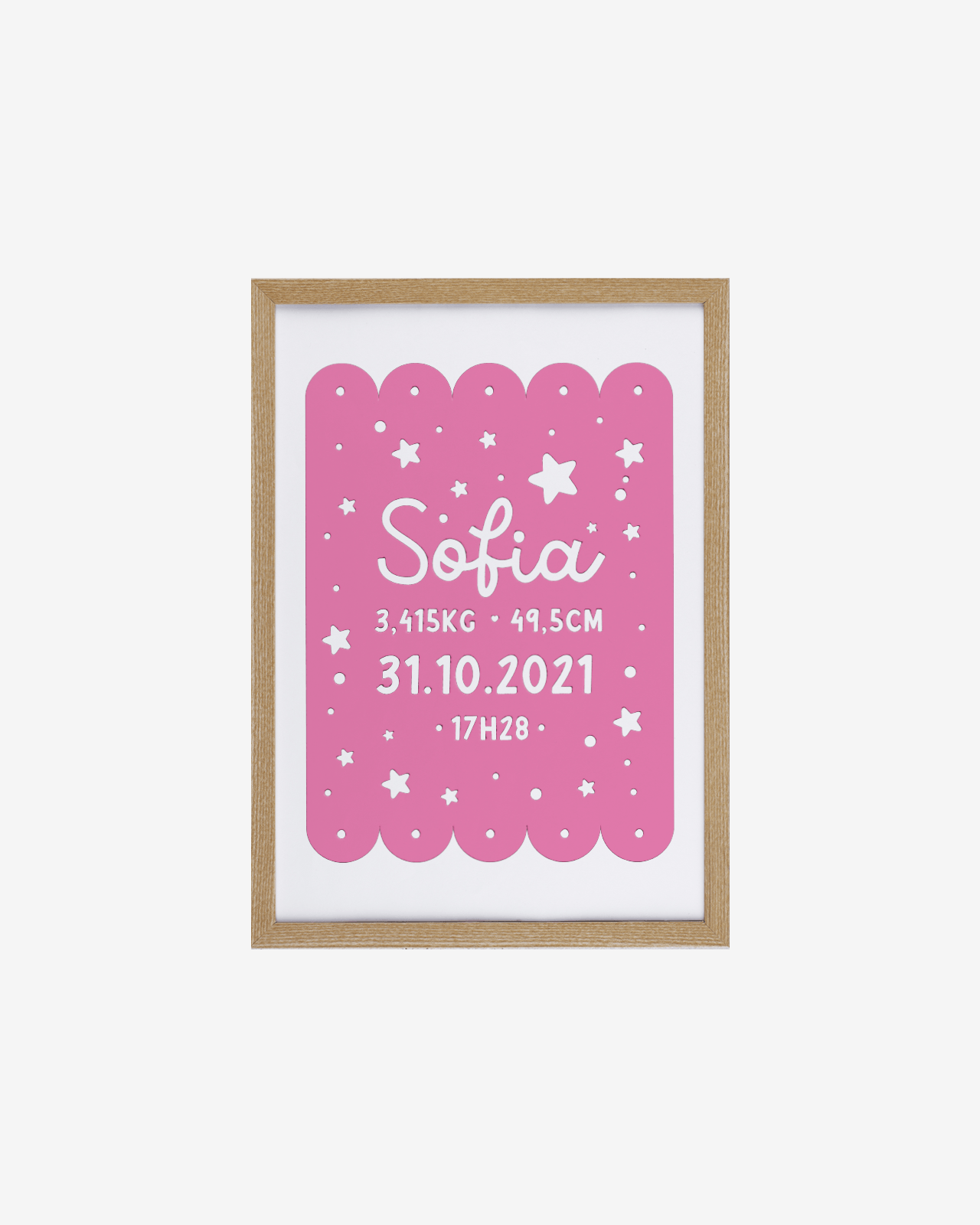Crafted with the utmost care on 300 g/m² cardstock, each poster is designed to highlight the key details of a baby’s first moments. A meaningful keepsake and a lovely addition to any nursery.