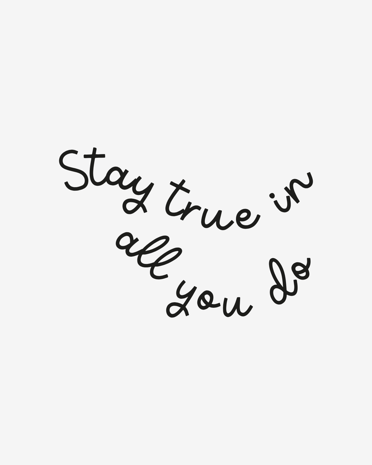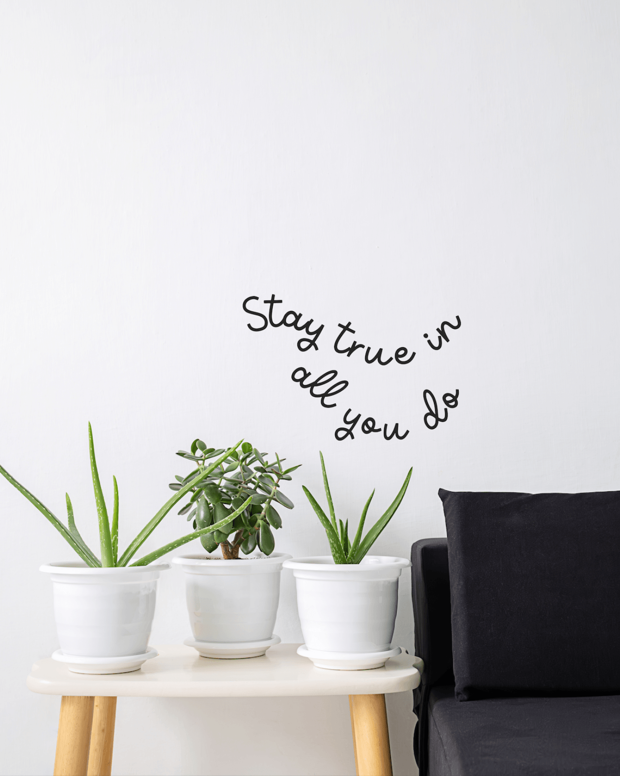Add a bold, mindful statement to your space with our “Stay True in All You Do” wall decal. Cut from removable vinyl, this design offers a clean and modern look that blends seamlessly into your wall.