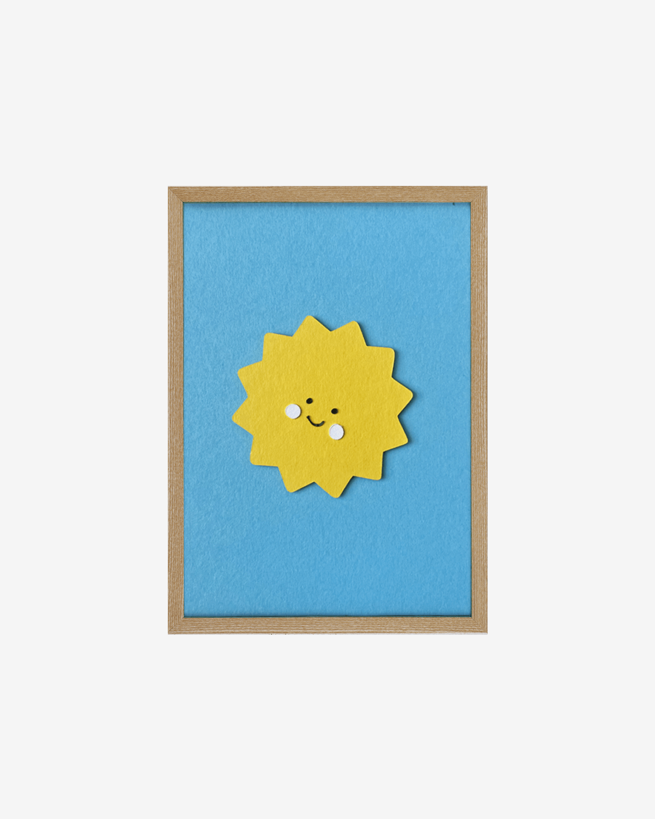 Brighten your space with our Sunshine Smile poster. Crafted from 300 g/m² cardstock and finished with a carefully applied sun detail, this joyful design features a radiant yellow sun with a happy face against a bright blue background. Intricately cut and hand-assembled, it brings warmth and positivity to any room.